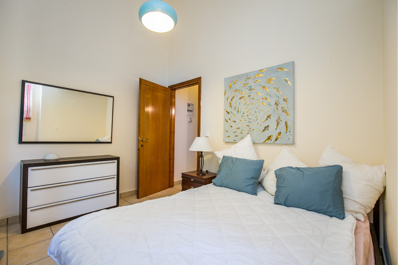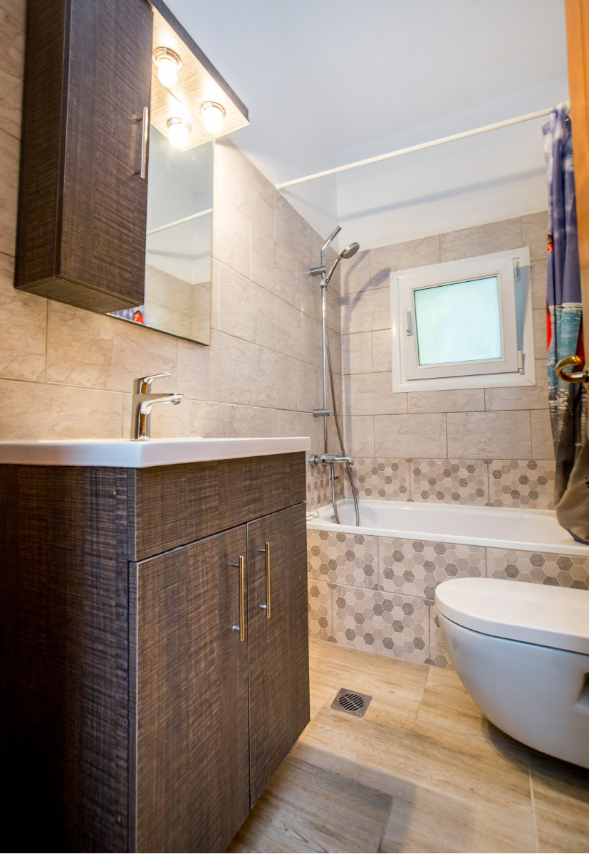 Στο κάτω επίπεδο βρίσκεται το δεύτερο υπνοδωμάτιο με τη δεύτερη τουαλέτα με ντουζιέρα.